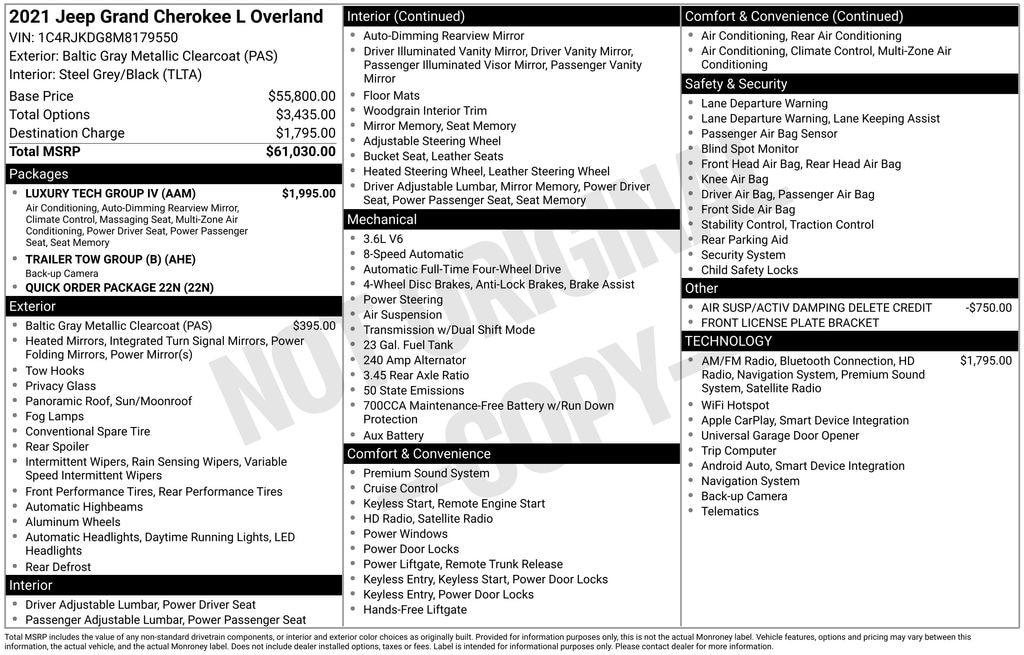 Used 2021 JeepGrand Cherokee L Overland SUV